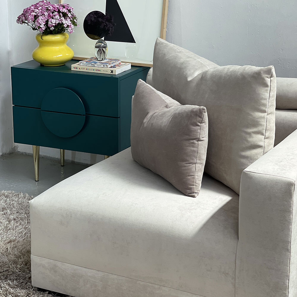 *Módulo esquinero con doble respaldo (incluye 1 almohadón caramelo en respaldo + 1 almohadón de respaldo)