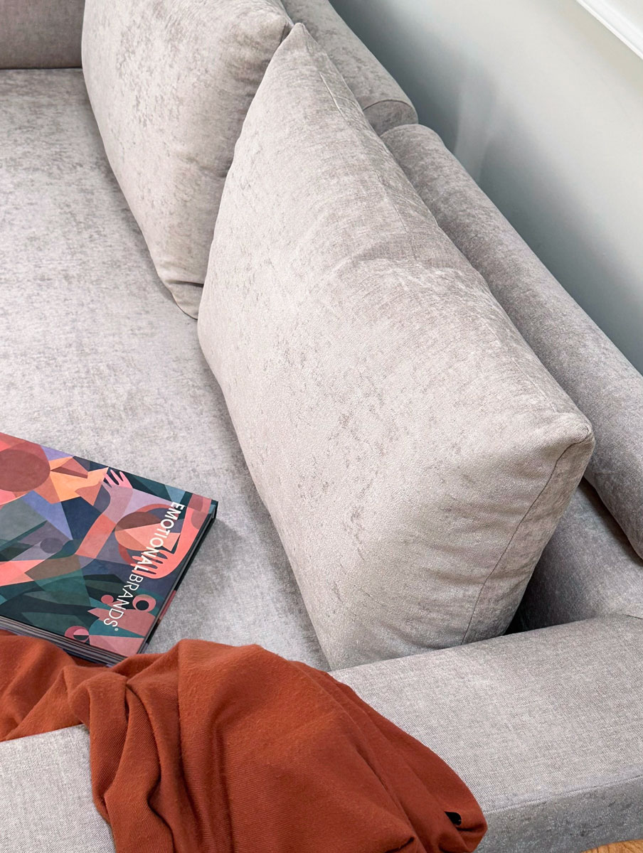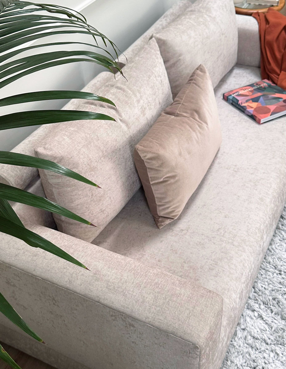 *Módulo esquinero con doble respaldo (incluye 1 almohadón caramelo en respaldo + 1 almohadón de respaldo)
